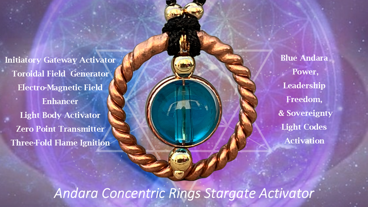 We further utilize the Light Technology of the Andara Concentric Rings Stargate Activator. As we experience each one of these twelve Stargate Ray Attunements, we will initially experience the Andara Concentric Rings Stargate Activator, an energetic tool comprising of two circles and an inner sphere which activates up and down the central column of the body and then through each one of the chakras in the related Ray colors, spinning them to the correct Fibonacci ratios.
